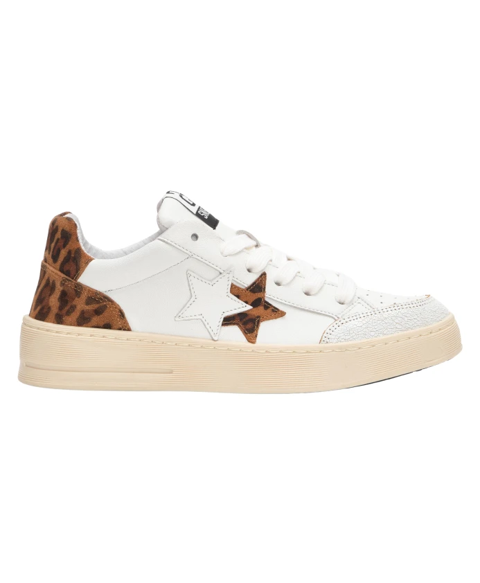 Кроссовки с леопардовым принтом из белой кожи 2Star, белый