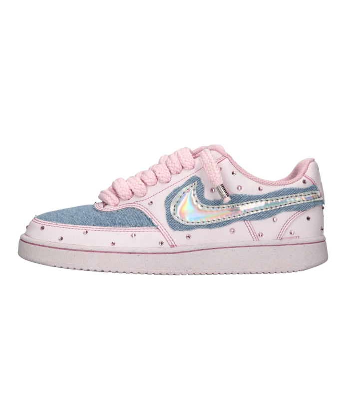Подчеркните свой стиль с помощью этих женских кроссовок Seddys из искусственной кожи. Они украшены стразами и джинсовой тканью, имеют тканевый верх, резиновую подошву и шнуровку из веревки.
