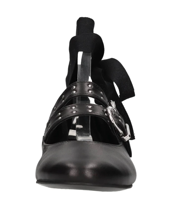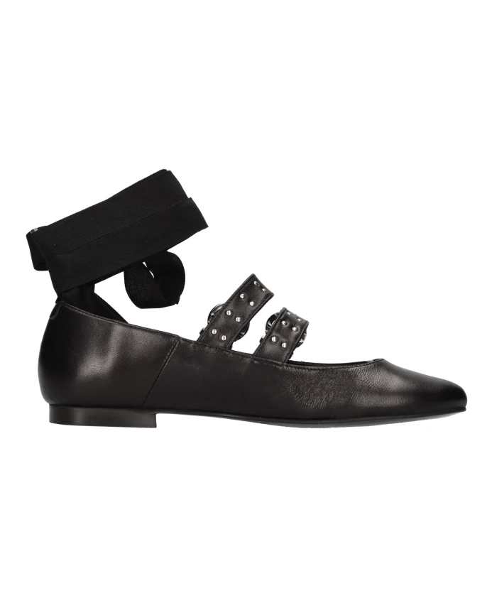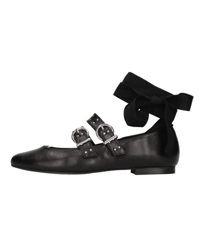 Подчеркните свой стиль с помощью этих кожаных балеток ALOHAS. Благодаря двойной пряжке, заклепкам, кожаному верху и резиновой подошве, эти балетки идеально подойдут современной женщине.