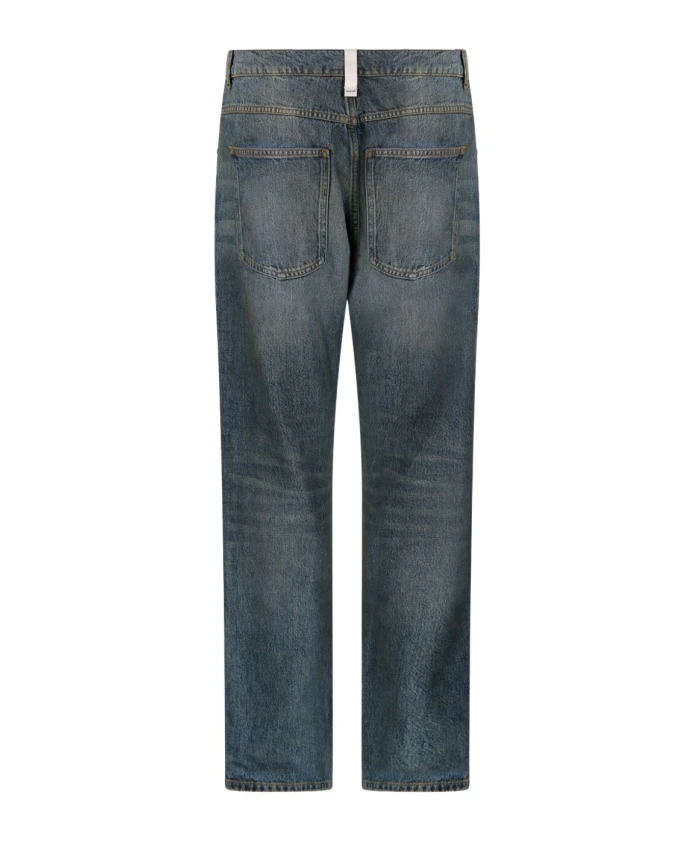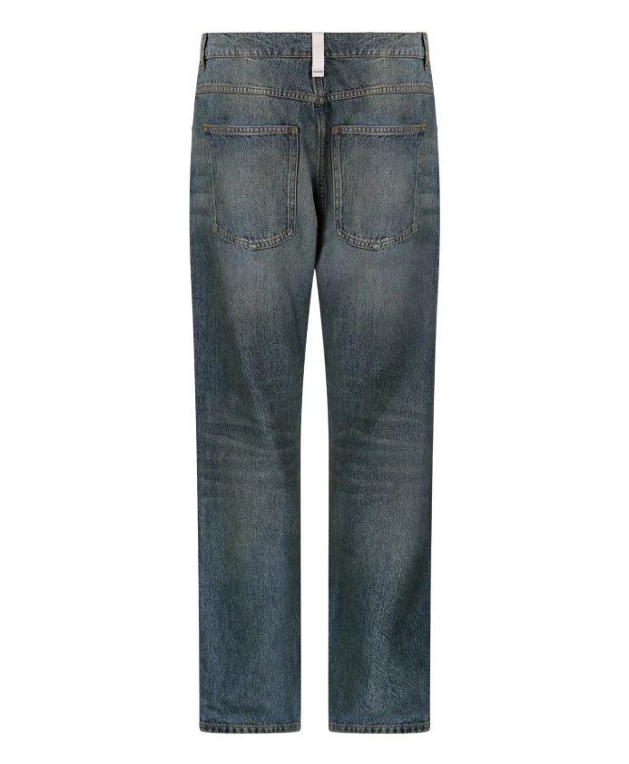 Прямые джинсы прямого кроя для мужчин-амишей, синего цвета, с потайной застежкой на молнию и пуговицу, петлями для ремня, классическими пятью карманами и эффектом потертости на бедрах.