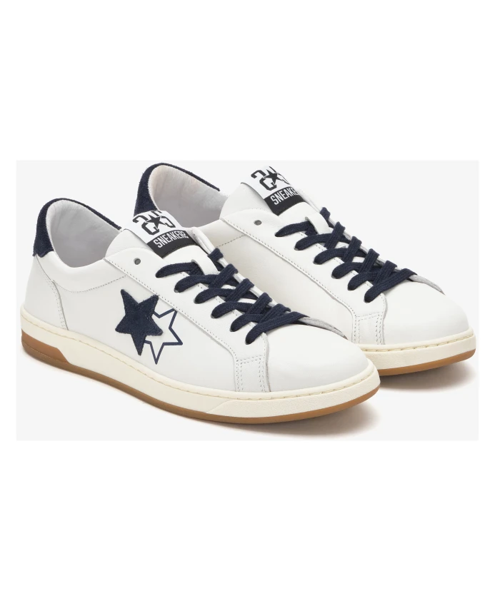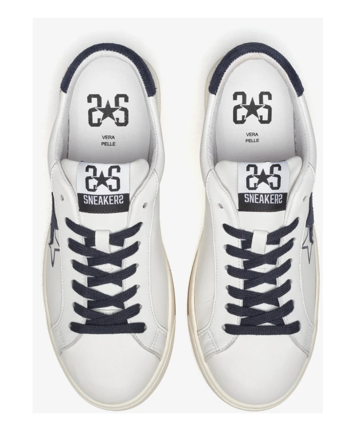 Белые кожаные кроссовки с синими деталями 2Star, белый
