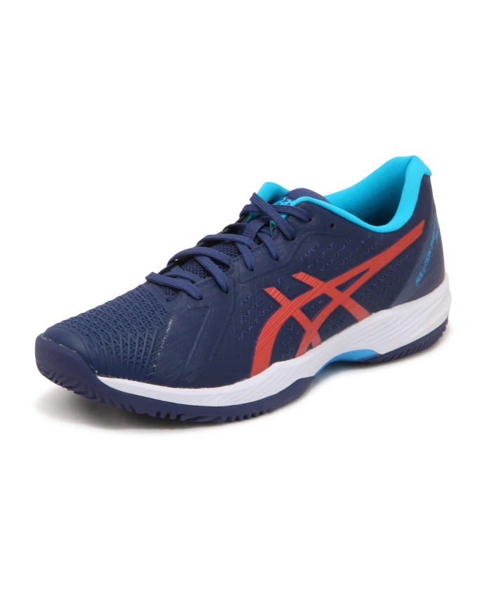 Мужские кроссовки Asics Solution Swift FF для падела в цвете Indigo Blue/Spice Latte. Доступны размеры EU 45 (US 11, UK 10, BR 42.5, AR 43.5) и EU 46 (US 11.5, UK 10.5, BR 43, AR 44).