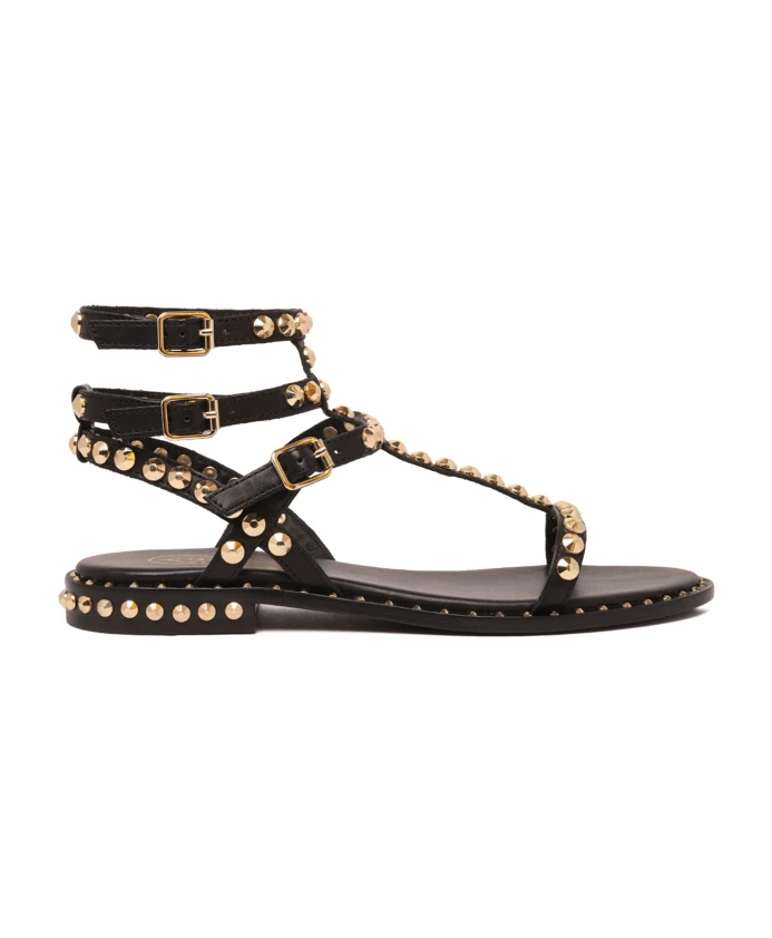 Подчеркните свой стиль с помощью черных сандалий ASH Black Play. Эти черные сандалии из телячьей кожи с открытым носком и серебряными заклепками идеально подойдут современной женщине.