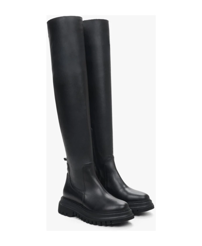 Черные кожаные сапоги выше колена Estro, черный 19 718₽