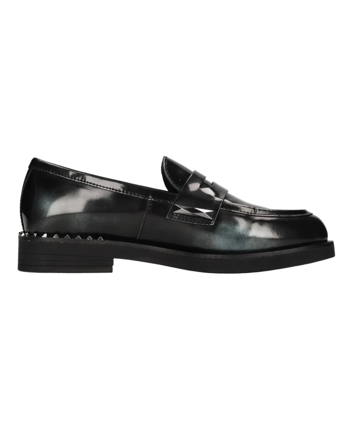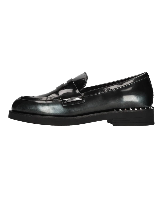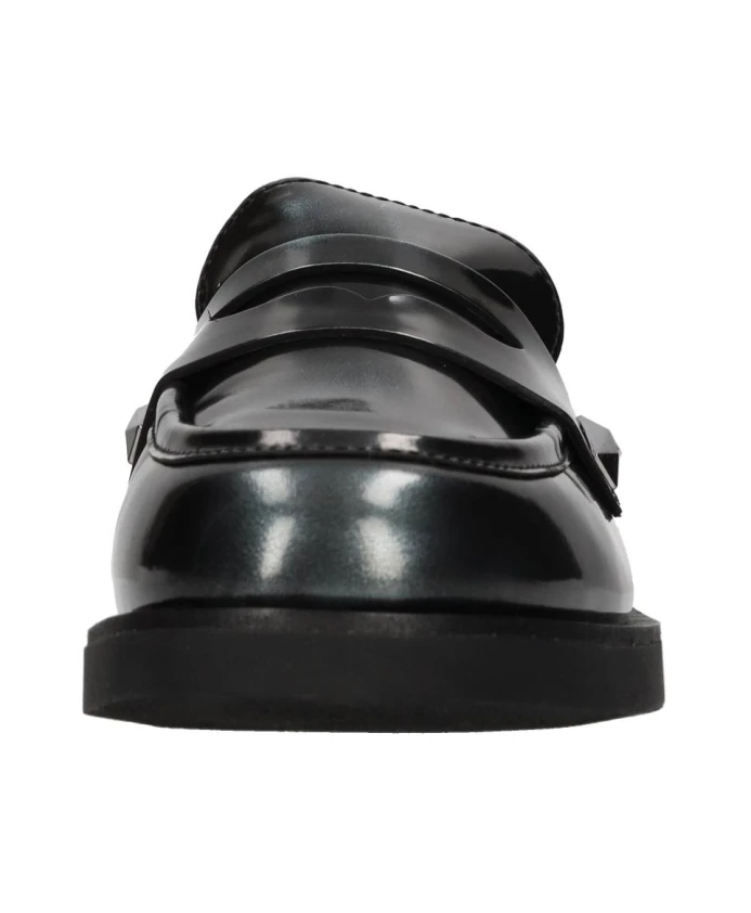 Подчеркните свой стиль с помощью этих кожаных лоферов ASH с зелеными блестящими акцентами, кожаным верхом, резиновой подошвой и серебряными заклепками. Идеальный вариант для модницы.