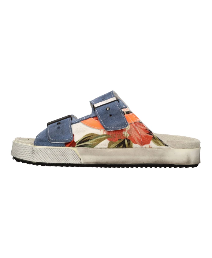 Подчеркните свой летний стиль с помощью этих шлепанцев Hidnander. Изготовлены из ткани и замши, с неоновыми деталями на верхней части. Подкладка из кожи и замши, резиновая подошва.