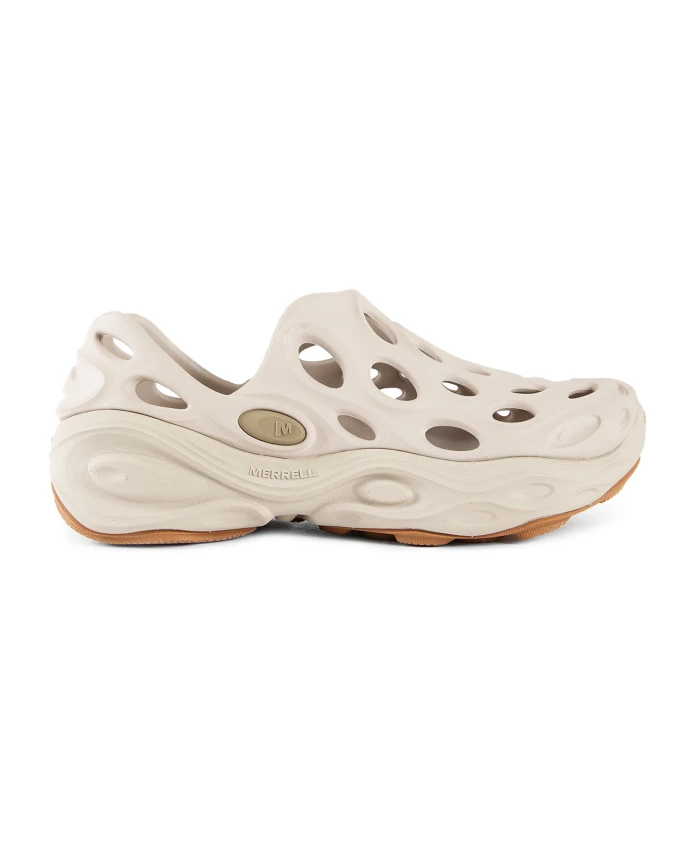 Мужские сандалии-балетки Merrell кремового цвета, изготовленные из формованной биомассы водорослей и пенопласта EVA, с логотипом. Имеют резиновую конструкцию и водостойкий дизайн.