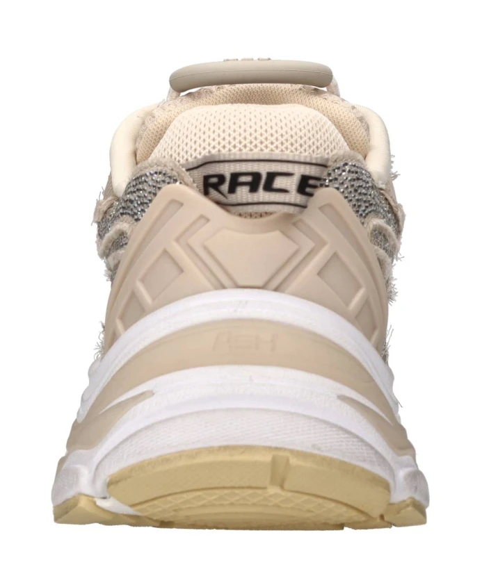 Подчеркните свой стиль с помощью кроссовок Race от ASH. Изготовленные из ткани с блестящими стразами, эти кроссовки имеют шнуровку и резиновую подошву. Идеальный выбор для модниц.