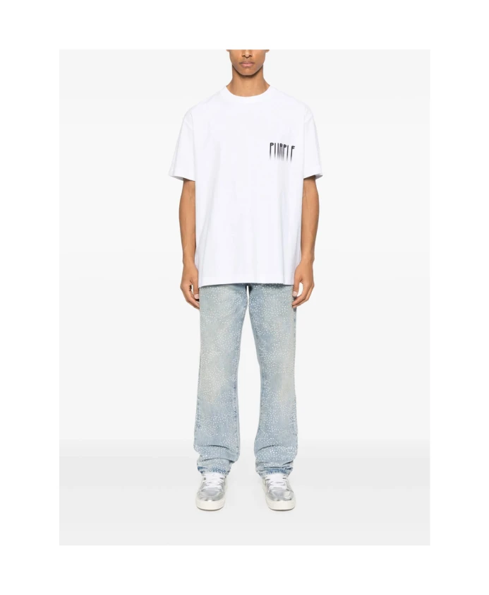 Подчеркните свой повседневный стиль с помощью этой белой футболки с круглым вырезом от Purple Brand. Футболка с логотипом на груди и спине идеально подойдет современному мужчине.
