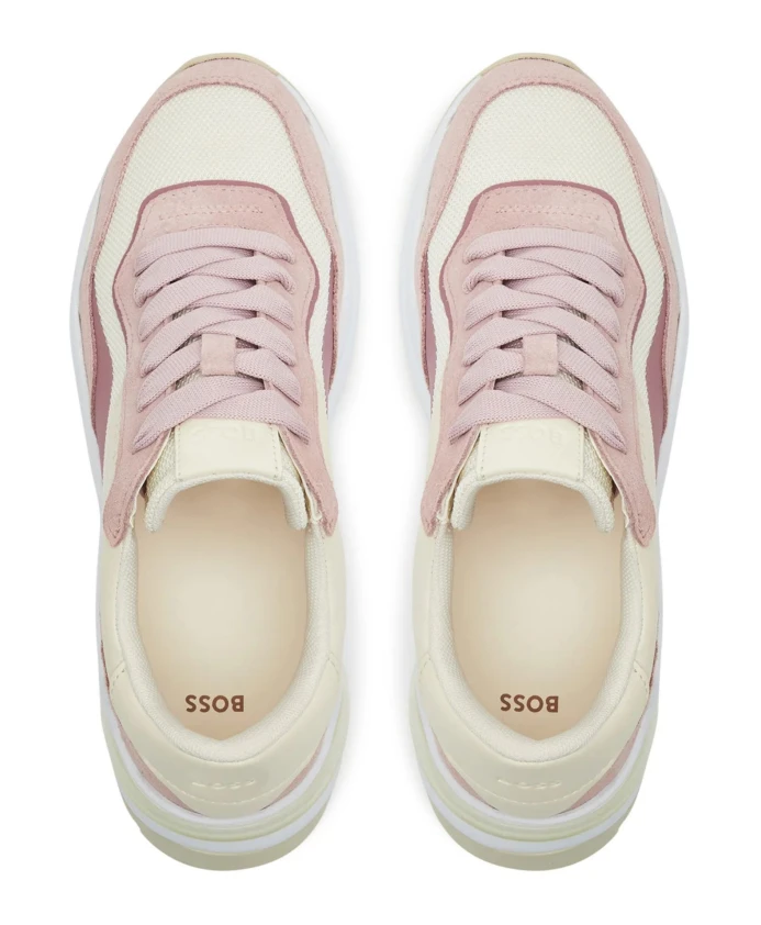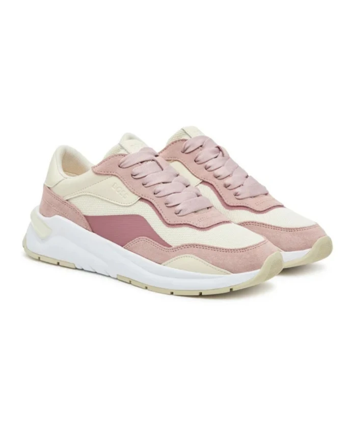 Поднимите свой стиль на новый уровень с этими женскими кроссовками Hugo. Изготовленные из сочетания замши и ткани в стильном розовом цвете, они идеально подойдут для весны/лета.