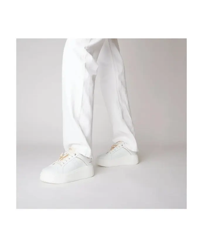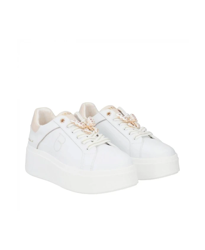 Подчеркните свой стиль с помощью этих женских кроссовок Tosca Blu. Модель выполнена на платформе, имеет контрастный каблук с логотипом и украшена изящным камнем в форме бабочки.