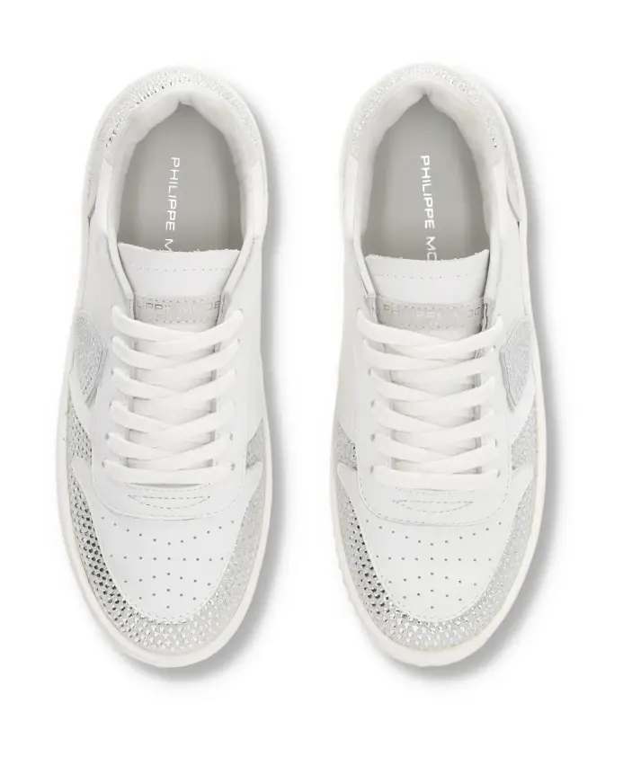 Кроссовки из телячьей кожи, украшенные кристаллами Swarovski. Мягкая съемная стелька, дышащая подкладка из вспененного хлопка. Ремешок и персонализированный логотип на подошве.
