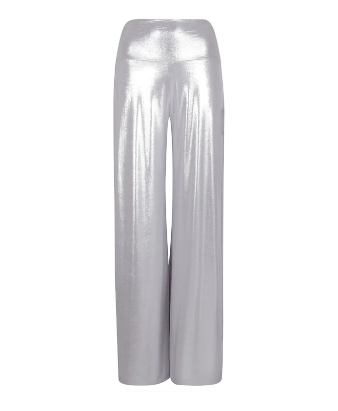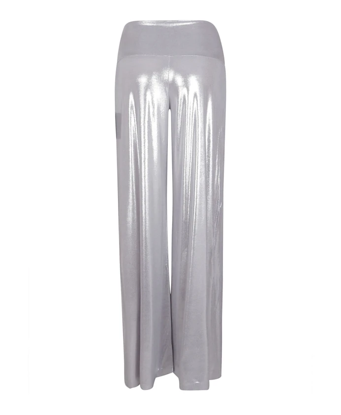 Серебристые брюки из полиэстера и эластана Norma Kamali, серый