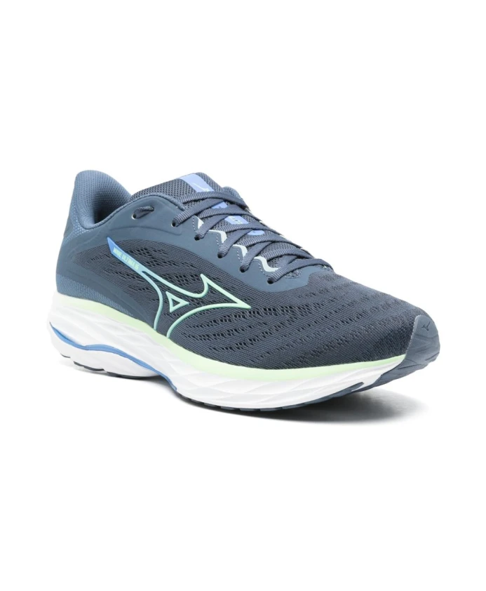 Подчеркните свой стиль с помощью этих мужских кроссовок Mizuno цвета индиго. Модель имеет шнуровку, фирменную отделку на заднике, логотип сбоку и нашивку с логотипом на язычке.