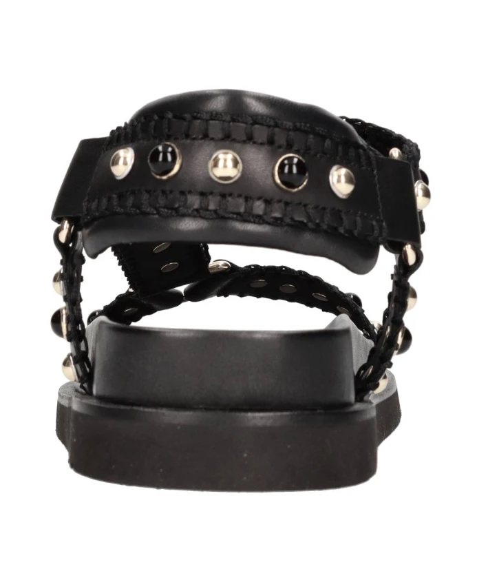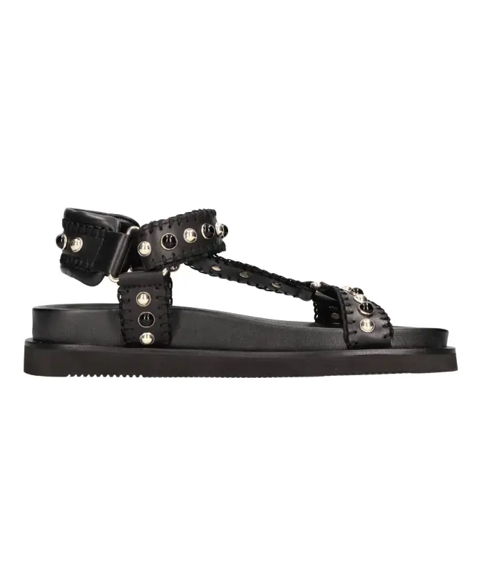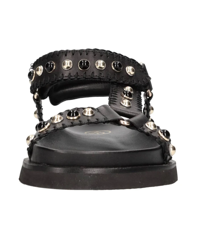 Женские кожаные сандалии на плоской подошве ASH. Детали с золотыми и черными заклепками. Кожаная подкладка с логотипом. Резиновая подошва с логотипом. Каблук высотой 2 см.