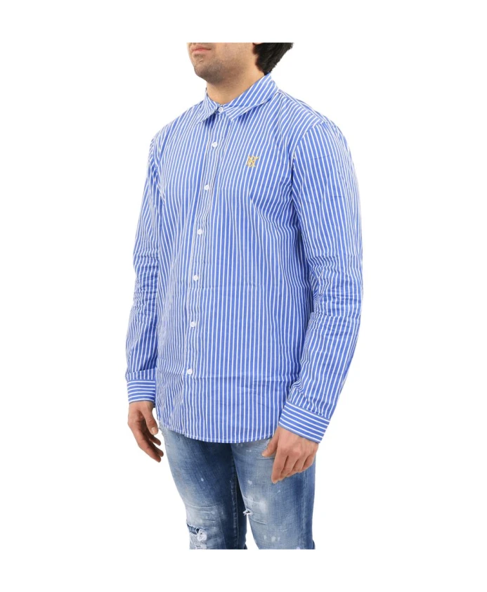 Подчеркните свой повседневный стиль с помощью этой мужской рубашки Daily Paper Mambo сине-белого цвета. Размер соответствует стандартному: заказывайте свой обычный размер.