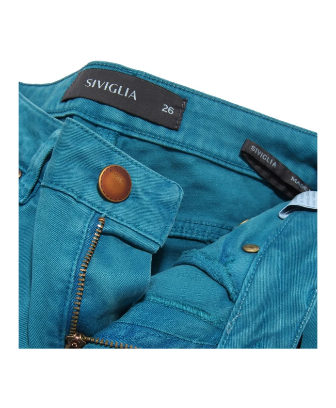 Подчеркните свой стиль с помощью этих узких джинсов Siviglia итальянского производства бирюзового цвета. Модель: S-P552D-11001A-017 S830 TURCHESE Размер 26: Талия 32 см.