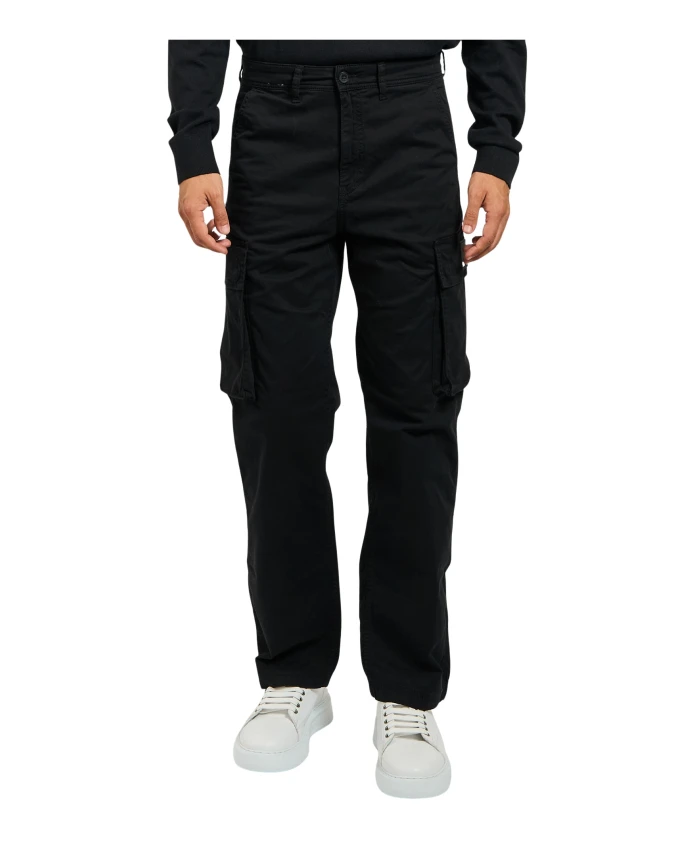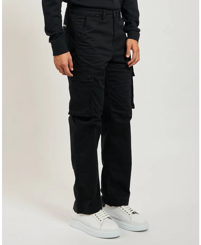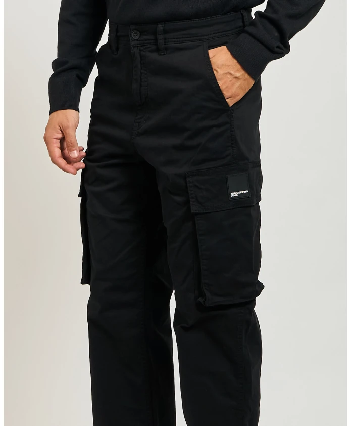 Мужские брюки-карго от Карла Лагерфельда с логотипом на кармане, боковыми и задними карманами, прямым кроем и застежкой на пуговицы. Модель носит размер M, рост 185 см.