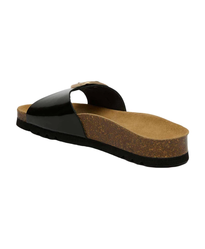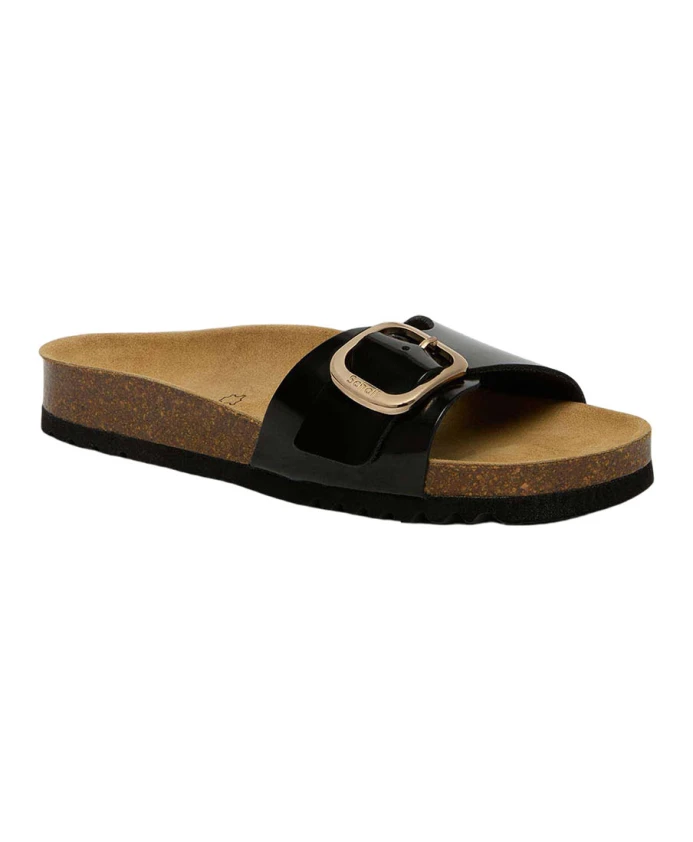 Туфли Scholl 'Kathleen' выполнены из глянцевой кожи с одной регулируемой пряжкой. Увеличенная пробковая стелька обеспечивает максимальный комфорт в течение всего дня.