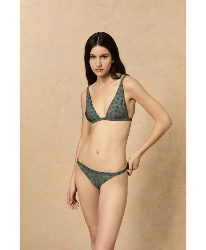 Верхняя часть бикини изготовлена из полиамида. Это бикини имеет уникальный узор, созданный креативным директором Cortana, и сочетается с нижней частью бикини Khata.
