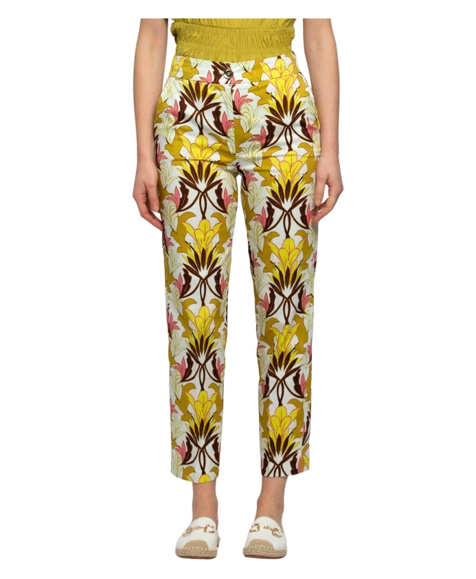Хлопковые брюки с цветочным принтом, удобного кроя. Носите их с топом и сандалиями на плоской подошве. Идеально подойдут для посиделок с друзьями или обеда у моря.