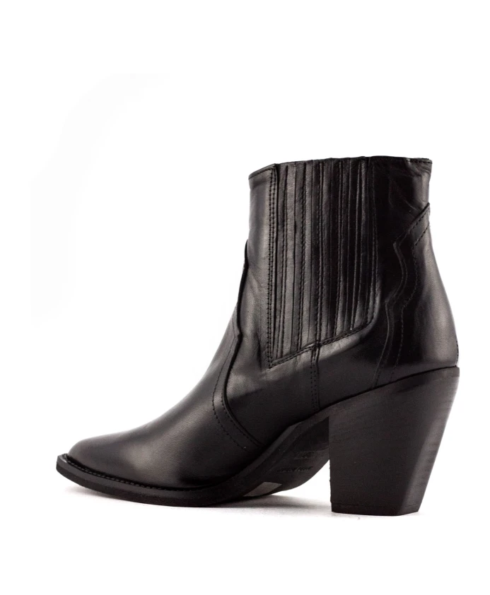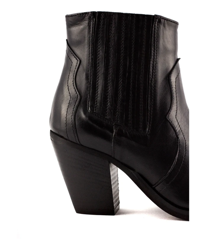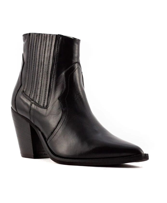 Произведите фурор в этих черных кожаных ботильонах Julie Dee с техасской строчкой, заостренным носком и каблуком 7 см. Идеальный вариант для современной ковбойки!
