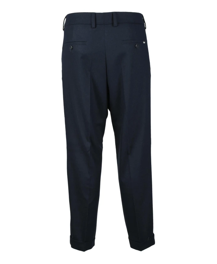Дополните свой формальный образ этими мужскими брюками от Hugo Boss, изготовленными из смеси 39% шерсти, 33% полиэстера, 14% вискозы, 13% полиамида и 1% эластана.