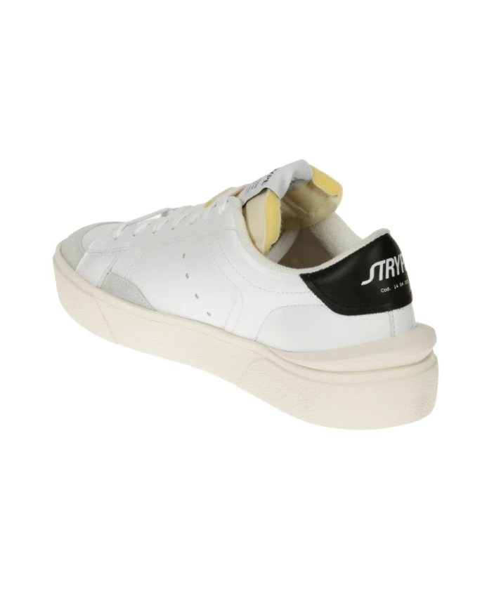 Подчеркните свой стиль с помощью этих женских кроссовок Strype Base, выполненных из высококачественной кожи и резиновой подошвы белого цвета с черными акцентами.