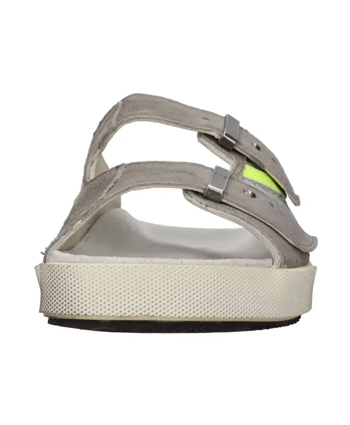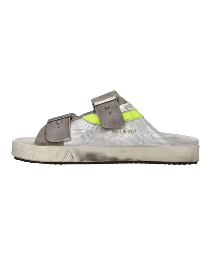 Подчеркните свой летний стиль с помощью этих шлепанцев Hidnander. Изготовлены из кожи и замши, имеют резиновую подошву, кожаную стельку и неоново-желтые детали.