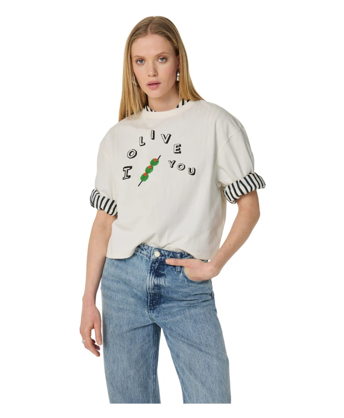 Эта свободная футболка украшена милым принтом и добавит игривости вашему образу. Ее легко можно сочетать с любимыми джинсами для простого, повседневного образа.