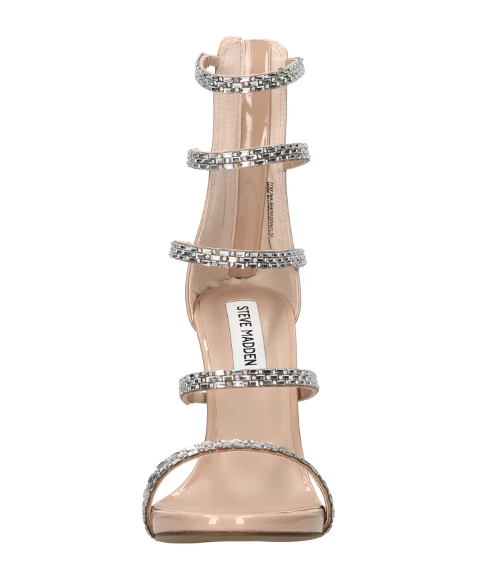 Сандалии на высоком каблуке Ecopelle от Steve Madden, украшенные стразами и имеющие текстурированную подошву. Текстурированная подкладка из материала Ecopelle.