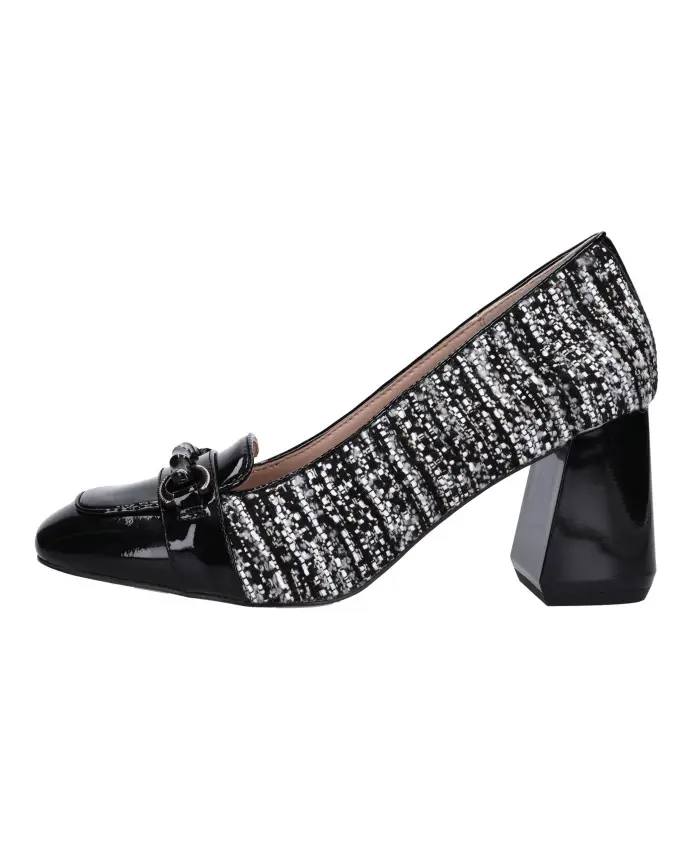 Лоферы Emanuelle Vee из лакированной кожи и ткани с верхом из натуральной кожи, искусственной кожей и резиновой подошвой. Идеальный выбор для стильной женщины.