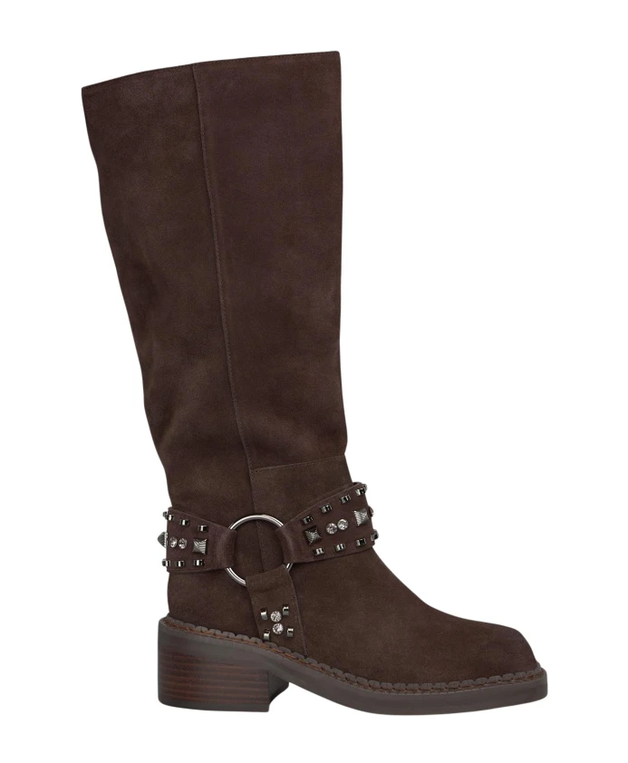 Dame Flat Bikerstøvlett с гвоздезабивателем. Среди них есть все, что нужно, и разводить их, и скользить по ним. Hælhøyden он 6 см и скафтет он 19 см.