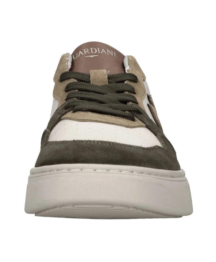 Подчеркните свой стиль с помощью этих мужских кроссовок Alberto Guardiani из кожи и замши. Верх выполнен из кожи и ткани, а подошва - из прочной резины.