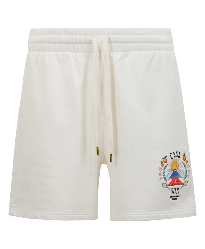 Мужские повседневные хлопковые шорты Casablanca. Эластичный пояс со шнурком. Накладной задний карман. Вышитый логотип сбоку. Изготовлены из 100% хлопка.