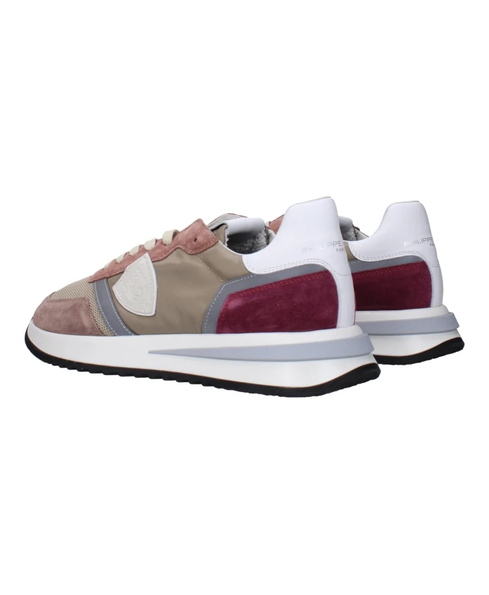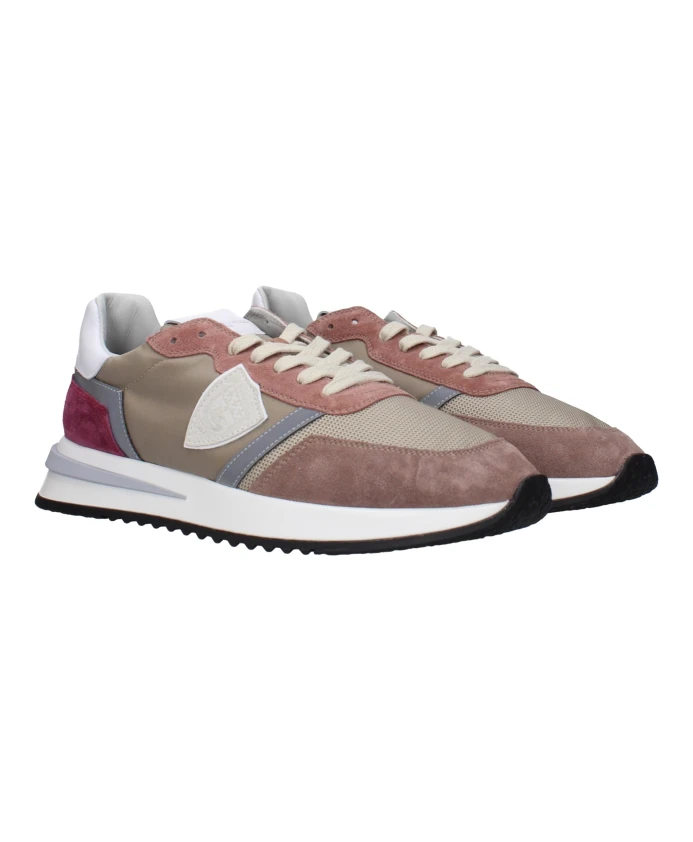 Откройте для себя стильные кроссовки Philippe Model из бежевой ткани с логотипом спереди, сзади и по бокам. Идеальный вариант для современного мужчины.