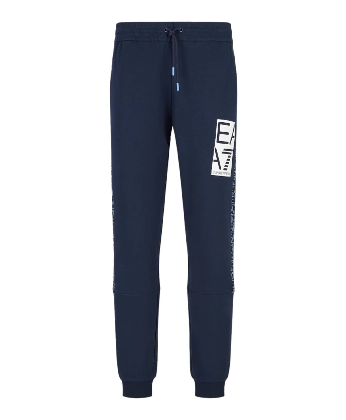 Оставайтесь стильными и чувствуйте себя комфортно в этих облегающих синих спортивных брюках от EA7 Emporio Armani, созданных для современного мужчины.