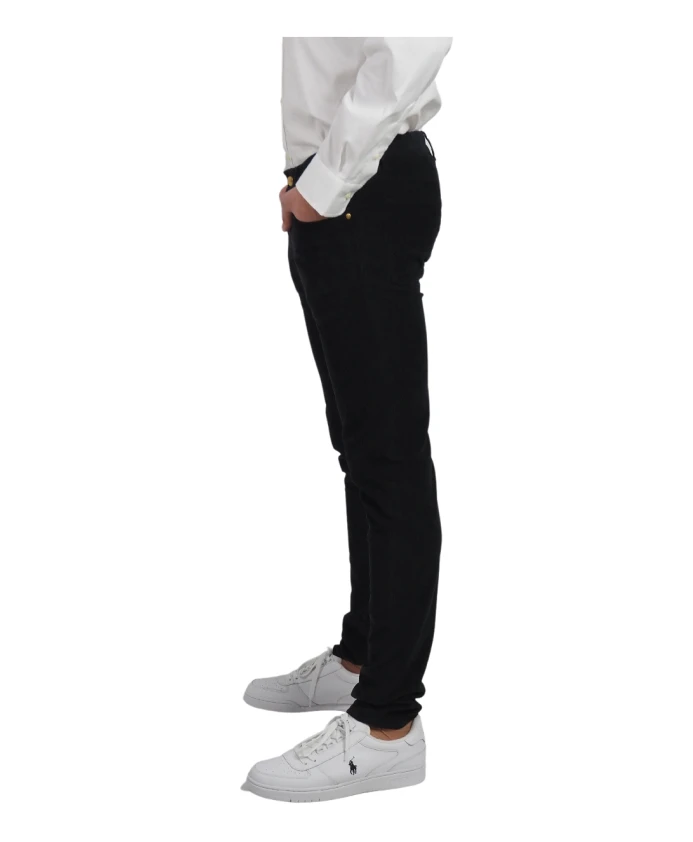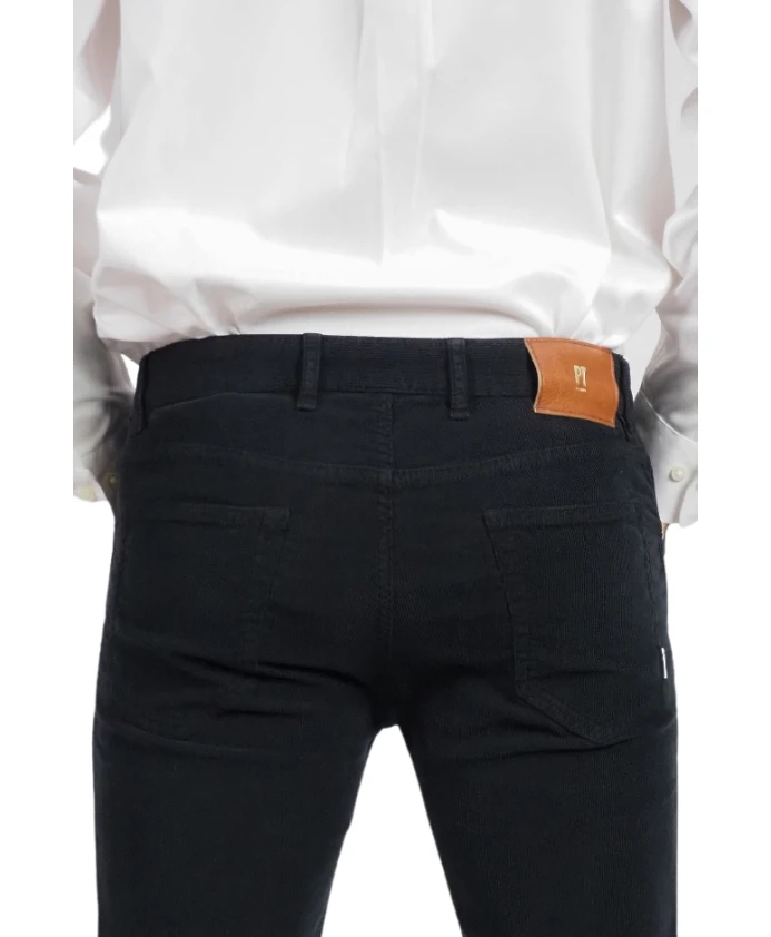 Мужские зауженные бархатные джинсы PT Torino с пятью карманами, черные, из бархата. Рост модели 190 см, размер 32. Больше мужских брюк смотрите здесь.