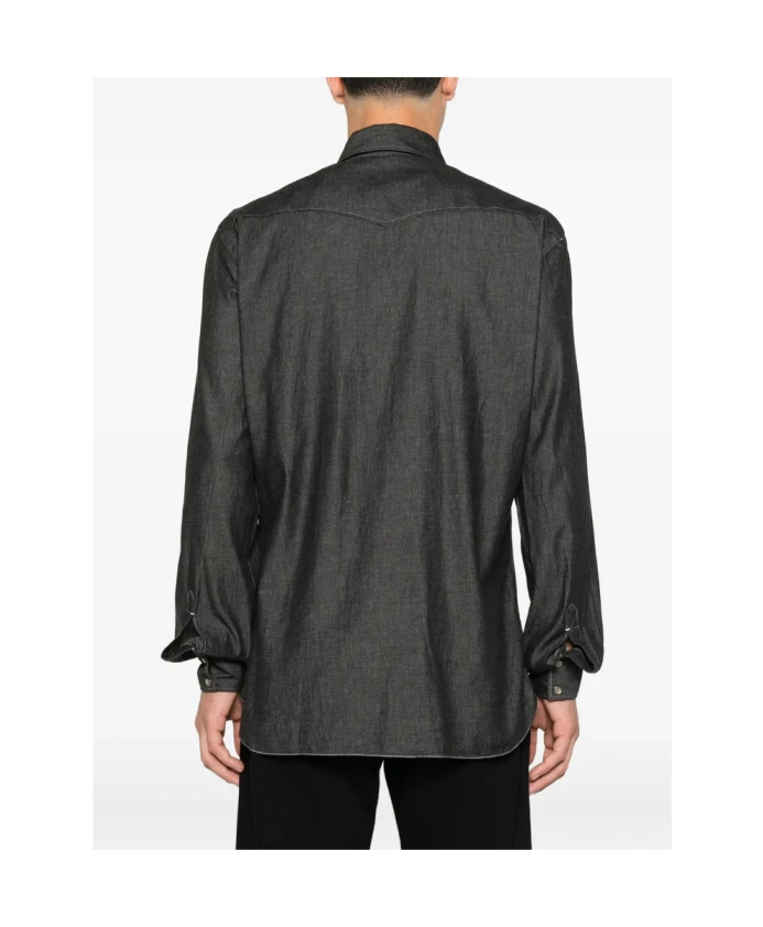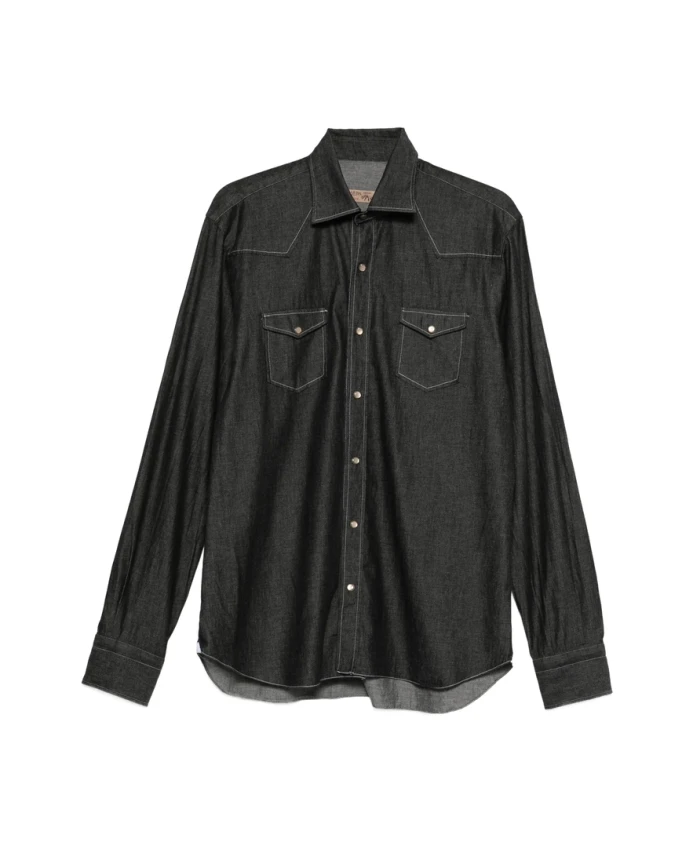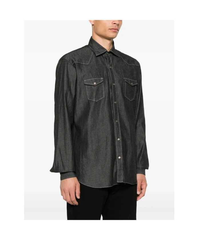 Черная повседневная мужская рубашка Barba с застежкой на пуговицы, нагрудными карманами, отложным воротником, длинными рукавами и закругленным низом.