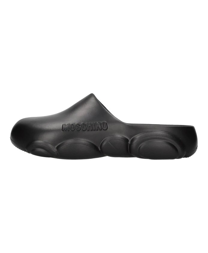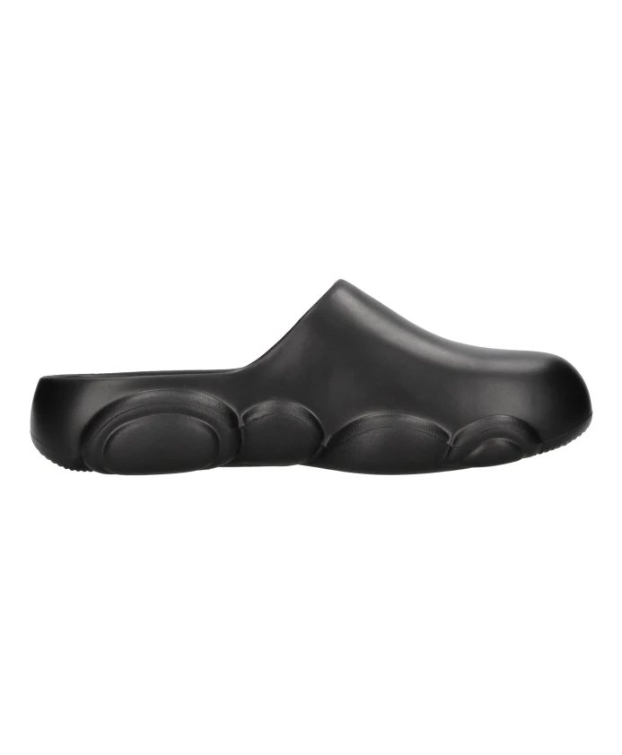 Подчеркните свой стиль с помощью этих плоских мюлей Moschino для женщин. Изготовлены из резины, имеют резиновую подошву и внутренний резиновый верх.