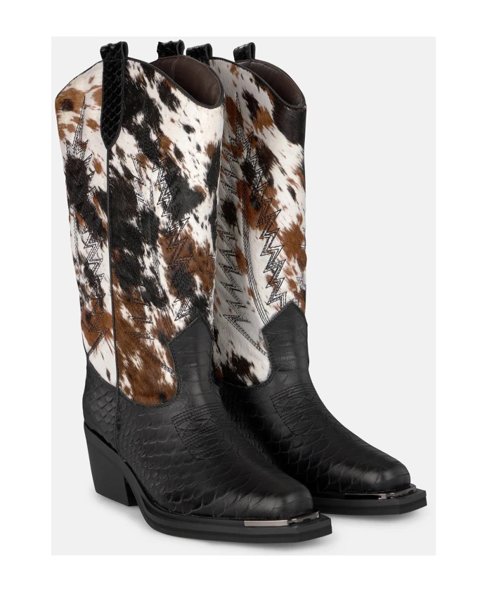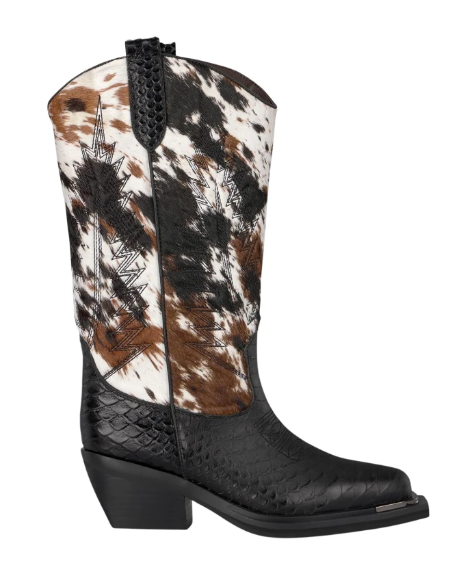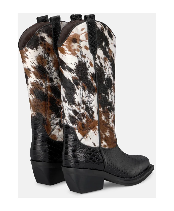 Женские ботильоны с принтом, средней высоты. С закругленным носком и широким каблуком, без застежки. Высота каблука: 6 см, высота голенища: 19 см.