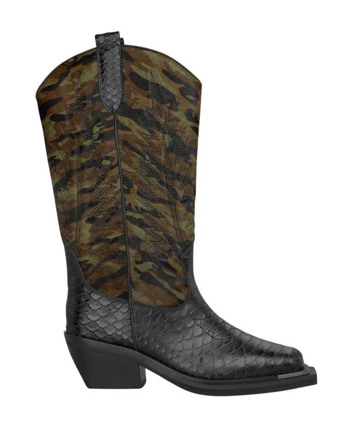 Женские ботильоны с принтом, средней высоты. С закругленным носком и широким каблуком, без застежки. Высота каблука: 6 см, высота голенища: 19 см.