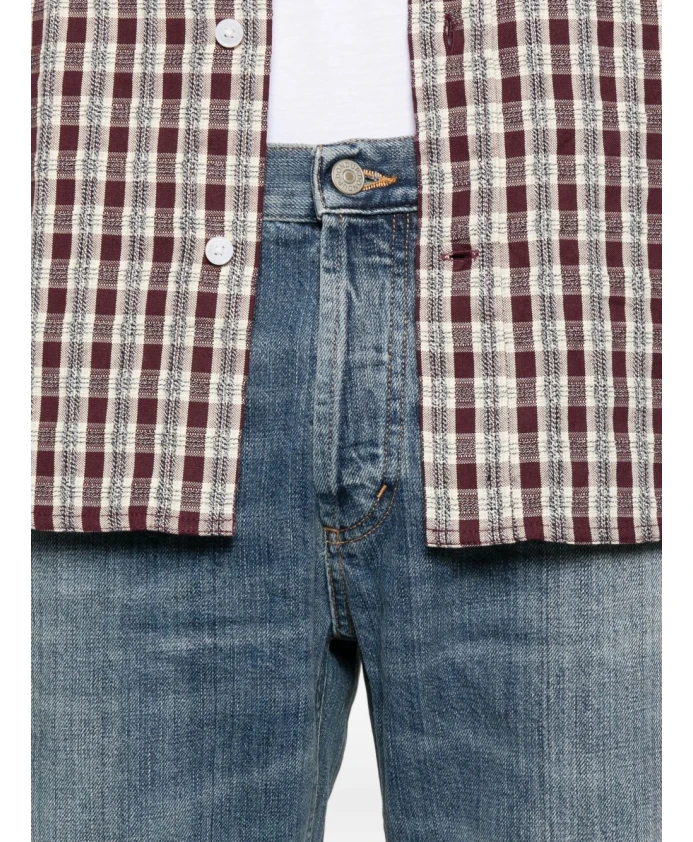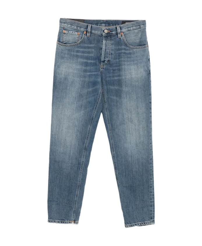 Мужские джинсы Dondup индиго-синего цвета, зауженного кроя, с застежкой на пуговицу и молнию, петлями для ремня и классическими пятью карманами.