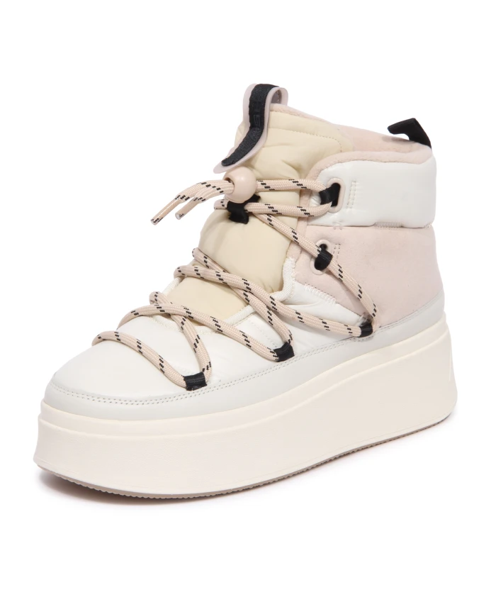 Оставайтесь стильными и в тепле этой зимой с женскими зимними сапогами ASH в цвете MONTANA COL. SHELL/TOFU/SHELL/SHELL/SHELL/BLACK. PUFFY NYLON.