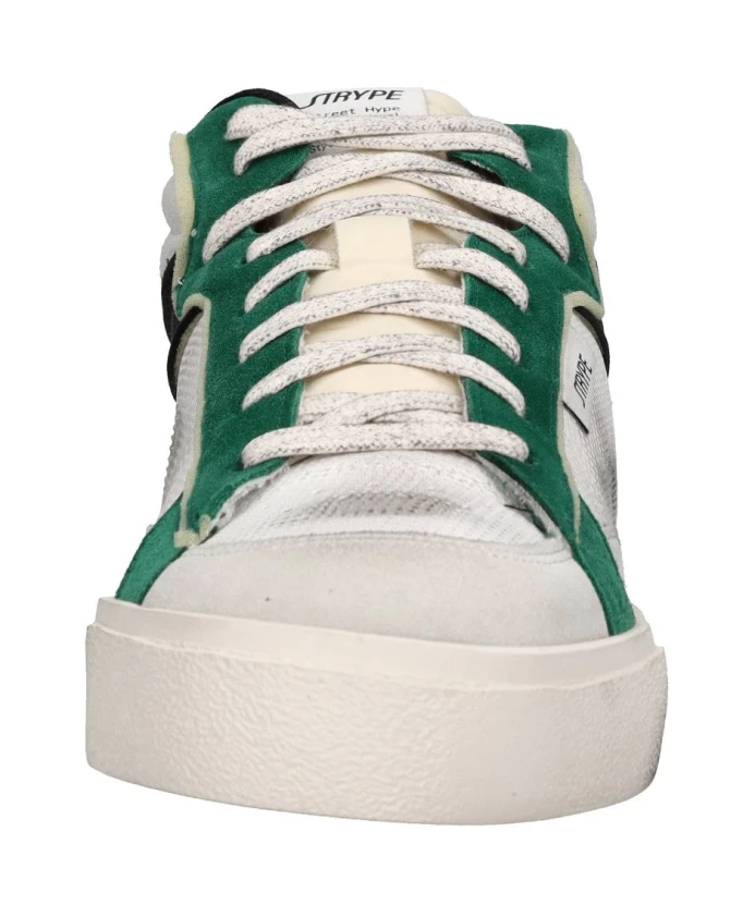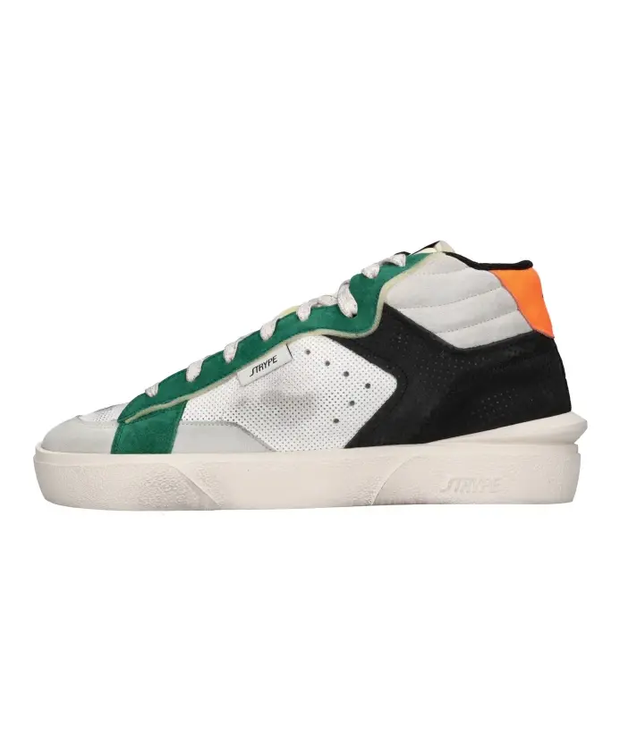 Мужские кроссовки Strype из кожи и ткани. Винтажный эффект благодаря внутренней тканевой подкладке и резиновой подошве. Флуоресцентные детали.