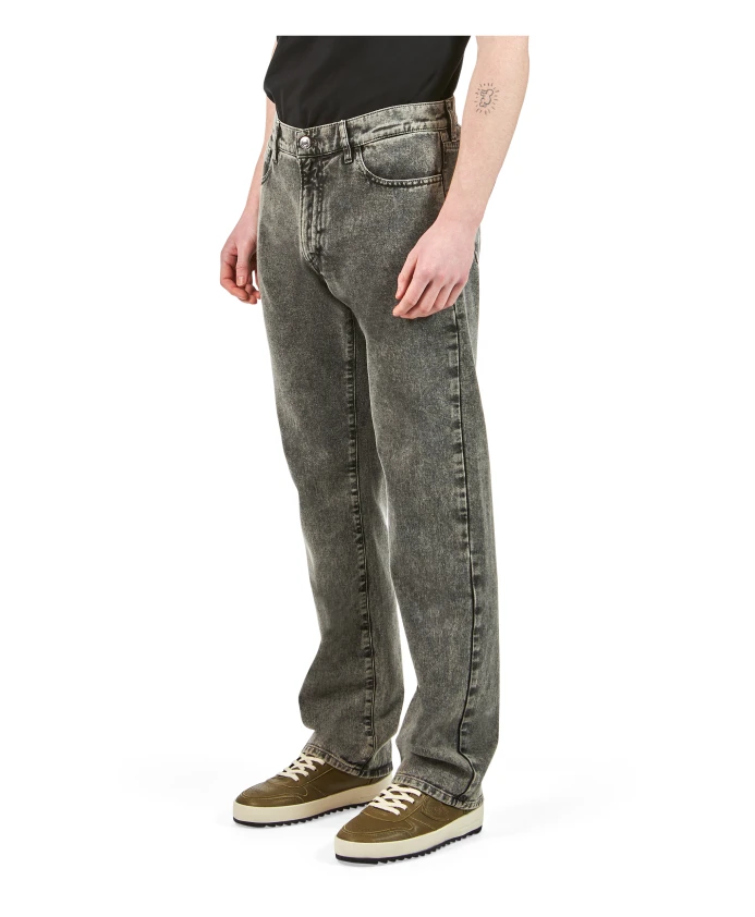 Джинсы Bull из хлопка плотностью 12 унций с мраморным черным рисунком. Стандартный крой, прорезиненная этикетка и пятый карман в форме щита.