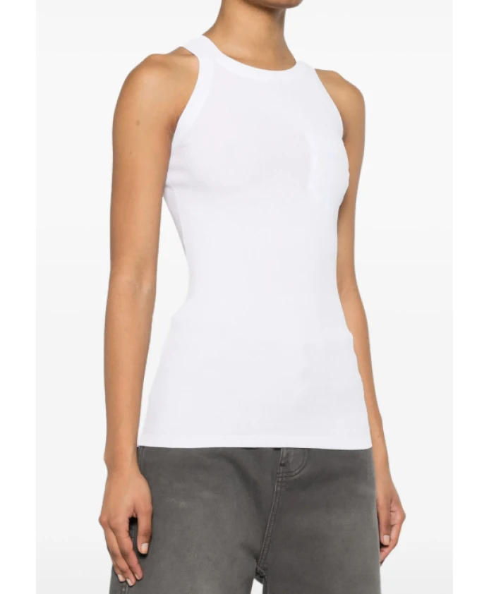 Женский топ Sportmax без рукавов из эластичной ткани в рубчик, стандартный крой, с нагрудным карманом. Состав: 83% вискозы и 17% полиэстера.