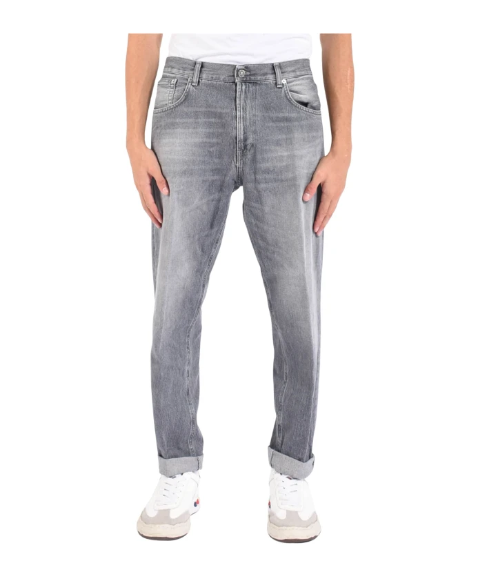 Джинсы Dondup зауженного кроя для мужчин, изготовленные из эластичной ткани. Низкая посадка, пять карманов. Рост модели 185 см, размер 32.