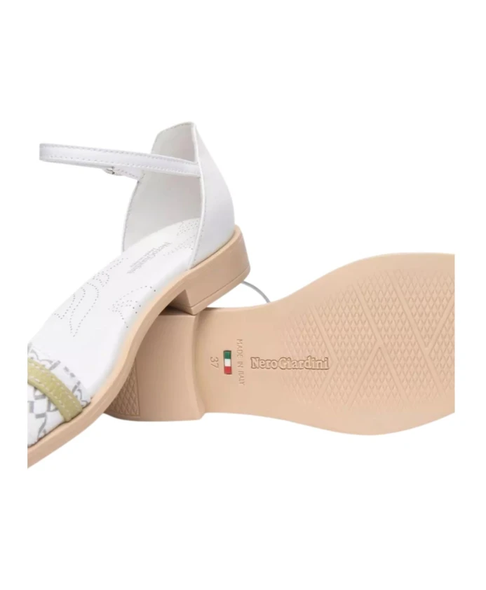 Произведите стильное впечатление в этих белых сандалиях на плоской подошве от Nero Giardini, идеально подходящих для современной женщины.