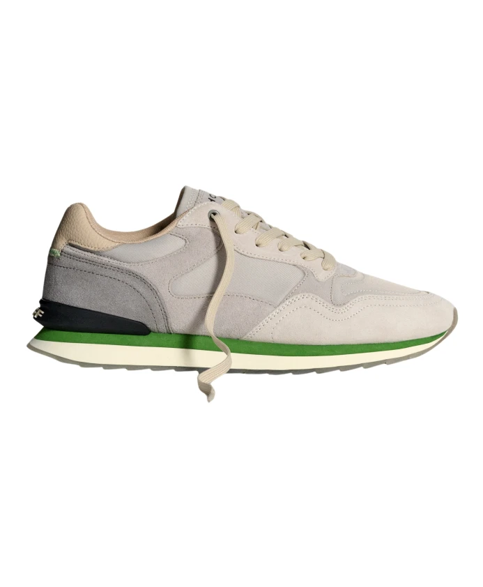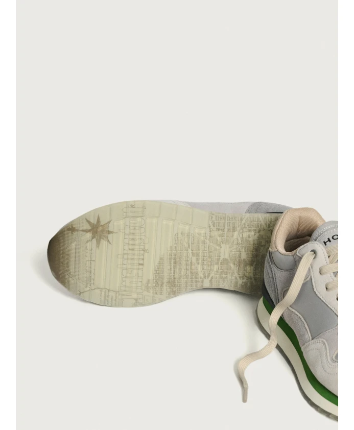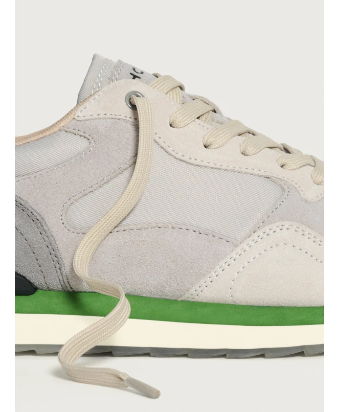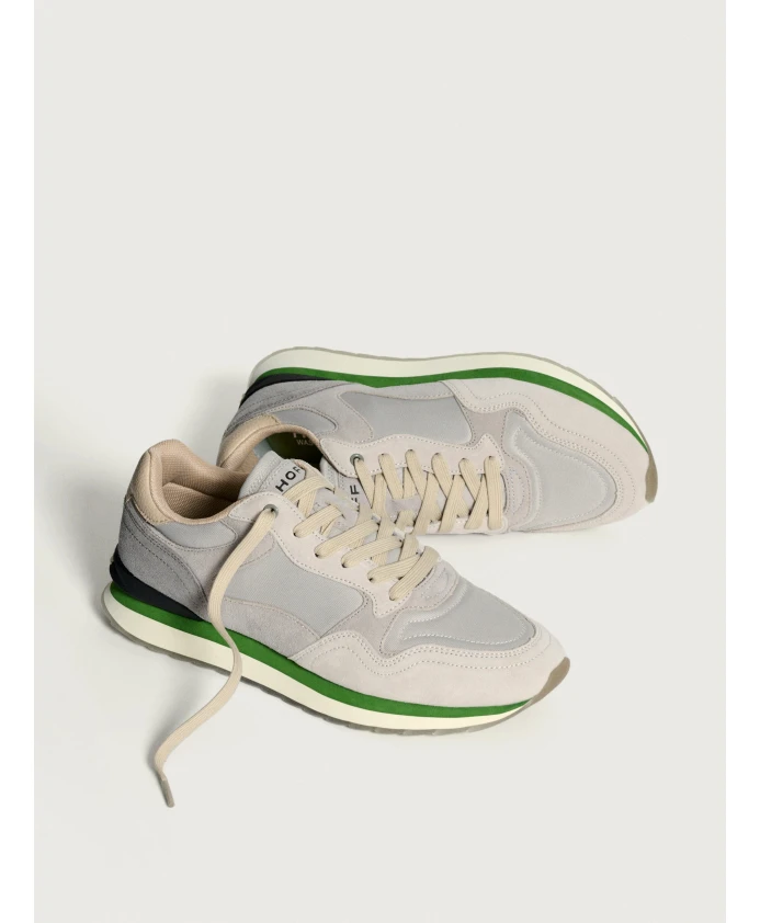 Ретро-кроссовки в сочетании цветов и материалов. Логотип на задней части. Подошва с трафаретной печатью. Шнуровка. Высота подошвы: 3 см.